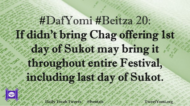Beitza, DafYomi #DafYomi #Beitza 20 Date: September 20, 2021Author: ysspitz #DafYomi #Beitza 20: If didn’t bring Chag offering 1st day of Sukot may bring it throughout entire Festival, including last day of Sukot. Share this: Share on X (Opens in new window) X Share on Facebook (Opens in new window) Facebook Like Loading... Related