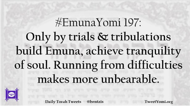#EmunaYomi 197: Only by trials & tribulations build Emuna, achieve tranquility of soul. Running from difficulties makes more unbearable.