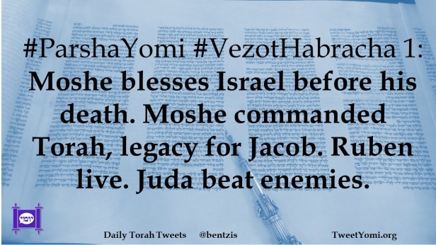 #ParshaYomi #VezotHabracha 1: Moshe blesses Israel before his death. Moshe commanded Torah, legacy for Jacob. Ruben live. Juda beat enemies.