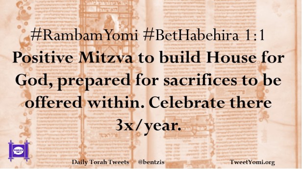 #RambamYomi #BetHabehira 1:1 Positive Mitzva to build House for God, prepared for sacrifices to be offered within. Celebrate there 3x/year.