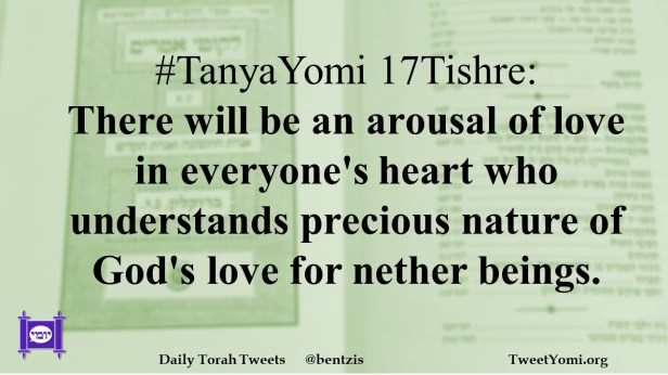 #TanyaYomi 17Tishre: There will be an arousal of love in everyone’s heart who understands precious nature of God’s love for nether beings.