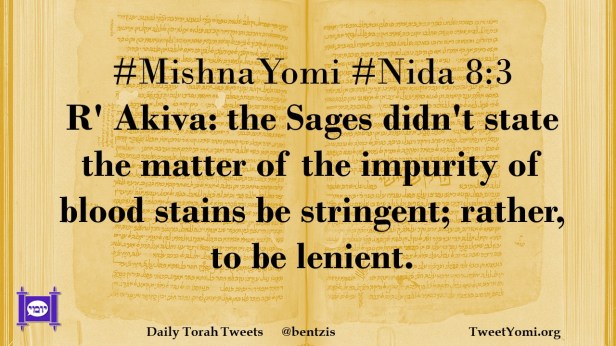#MishnaYomi #Nida 8:3 R’ Akiva: the Sages didn’t state the matter of the impurity of blood stains be stringent; rather, to be lenient.