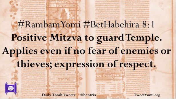 #RambamYomi #BetHabehira 8:1 Positive Mitzva to guard Temple. Applies even if no fear of enemies or thieves; expression of respect.
