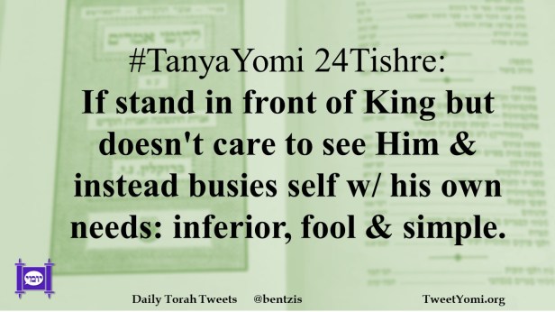 #TanyaYomi 24Tishre: If stand in front of King but doesn’t care to see Him & instead busies self w/ his own needs: inferior, fool & simple.