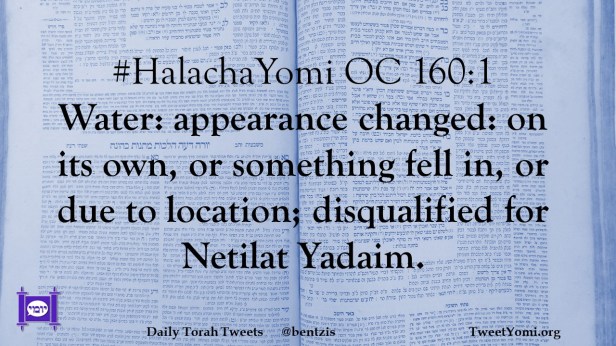#HalachaYomi OC 160:1 Water: appearance changed: on its own, or something fell in, or due to location; disqualified for Netilat Yadaim.