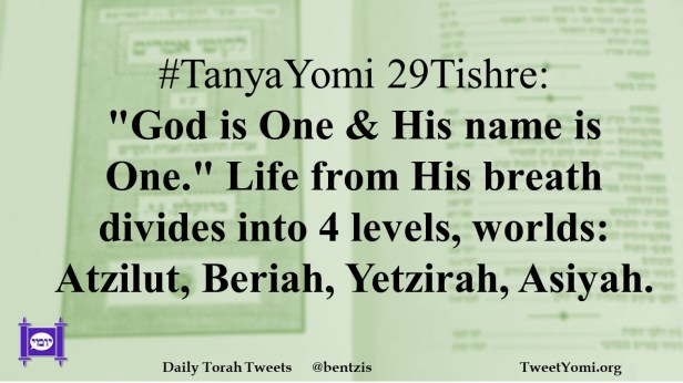 #TanyaYomi 29Tishre: “God is One & His name is One.” Life from His breath divides into 4 levels, worlds: Atzilut, Beriah, Yetzirah, Asiyah.