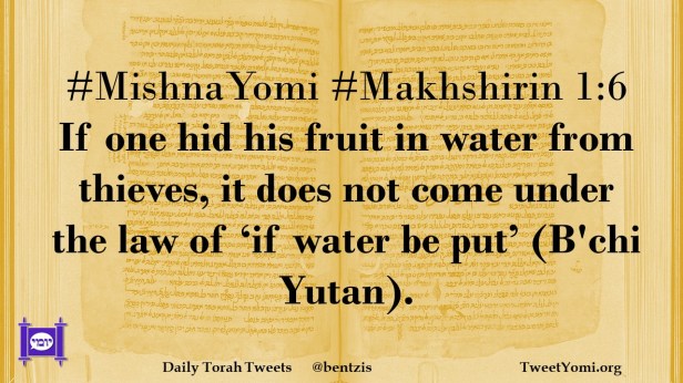 #MishnaYomi #Makhshirin 1:6 If one hid his fruit in water from thieves, it does not come under the law of ‘if water be put’ (B’chi Yutan).