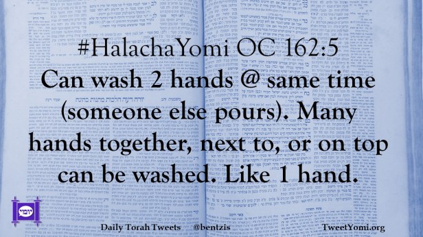 #HalachaYomi OC 162:5 Can wash 2 hands @ same time (someone else pours). Many hands together, next to, or on top can be washed. Like 1 hand.