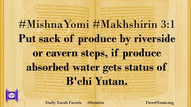#MishnaYomi #Makhshirin 3:1 Put sack of produce by riverside or cavern steps, if produce absorbed water gets status of B’chi Yutan.