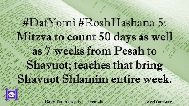#DafYomi #RoshHashana 5: Mitzva to count 50 days as well as 7 weeks from Pesah to Shavuot; teaches that bring Shavuot Shlamim entire week.