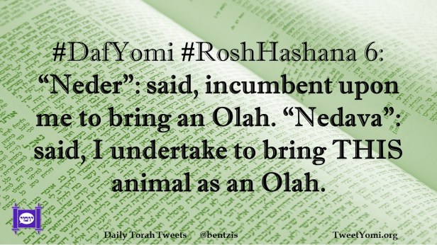 #DafYomi #RoshHashana 6: “Neder”: said, incumbent upon me to bring an Olah. “Nedava”: said, I undertake to bring THIS animal as an Olah.