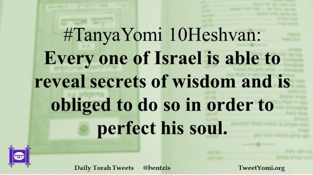 #TanyaYomi 10Heshvan: Every one of Israel is able to reveal secrets of wisdom and is obliged to do so in order to perfect his soul.