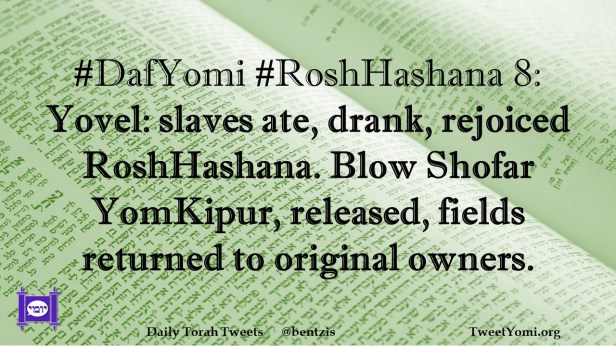 #DafYomi #RoshHashana 8: Yovel: slaves ate, drank, rejoiced RoshHashana. Blow Shofar YomKipur, released, fields returned to original owners.