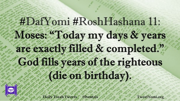 #DafYomi #RoshHashana 11: Moses: “Today my days & years are exactly filled & completed.” God fills years of the righteous (die on birthday).