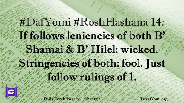 #DafYomi #RoshHashana 14: If follows leniencies of both B’ Shamai & B’ Hilel: wicked. Stringencies of both: fool. Just follow rulings of 1.