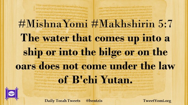 #MishnaYomi #Makhshirin 5:7 The water that comes up into a ship or into the bilge or on the oars does not come under the law of B’chi Yutan.