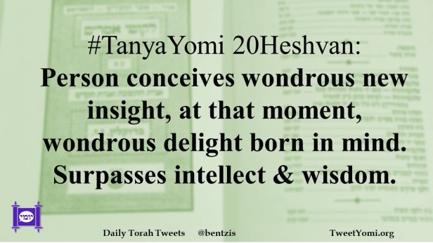 #TanyaYomi 20Heshvan: Person conceives wondrous new insight, at that moment, wondrous delight born in mind. Surpasses intellect & wisdom.
