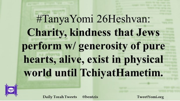 #TanyaYomi 26Heshvan: Charity, kindness that Jews perform w/ generosity of pure hearts, alive, exist in physical world until TchiyatHametim.