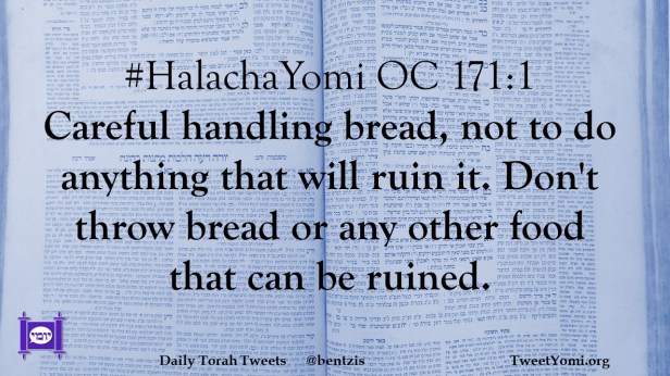 #HalachaYomi OC 171:1 Careful handling bread, not to do anything that will ruin it. Don’t throw bread or any other food that can be ruined.