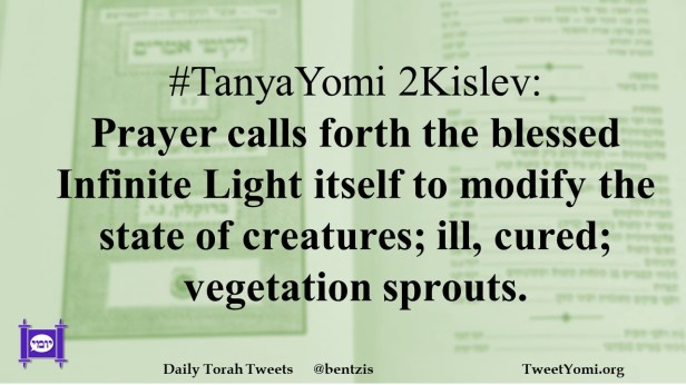 #TanyaYomi 2Kislev: Prayer calls forth the blessed Infinite Light itself to modify the state of creatures; ill, cured; vegetation sprouts.