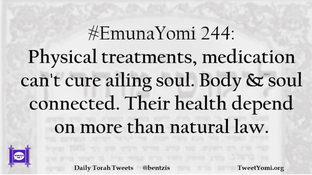 #EmunaYomi 244: Physical treatments, medication can’t cure ailing soul. Body & soul connected. Their health depend on more than natural law.