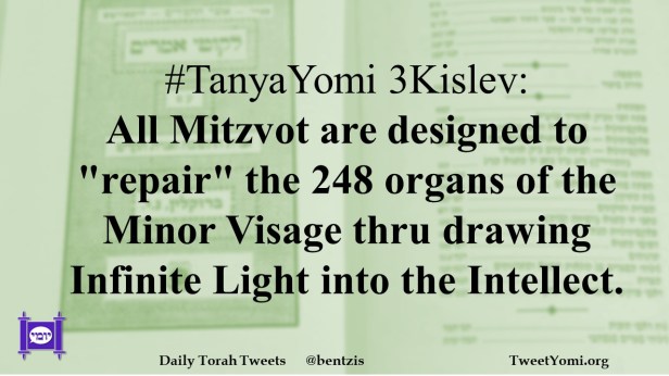 #TanyaYomi 3Kislev: All Mitzvot are designed to “repair” the 248 organs of the Minor Visage thru drawing Infinite Light into the Intellect.