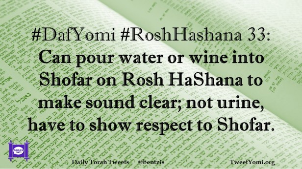 #DafYomi #RoshHashana 33: Can pour water or wine into Shofar on Rosh HaShana to make sound clear; not urine, have to show respect to Shofar.