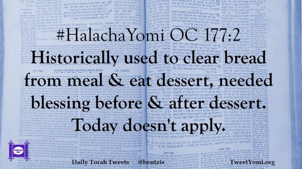 #HalachaYomi OC 177:2 Historically used to clear bread from meal & eat dessert, needed blessing before & after dessert. Today doesn’t apply.