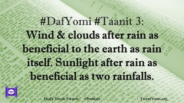 DafYomi, Taanit #DafYomi #Taanit 3 Date: November 15, 2021Author: ysspitz #DafYomi #Taanit 3: Wind & clouds after rain as beneficial to the earth as rain itself. Sunlight after rain as beneficial as two rainfalls. Share this: Share on X (Opens in new window) X Share on Facebook (Opens in new window) Facebook Like Loading... Related