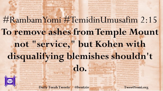 #RambamYomi #TemidinUmusafim 2:15 To remove ashes from Temple Mount not “service,” but Kohen with disqualifying blemishes shouldn’t do.