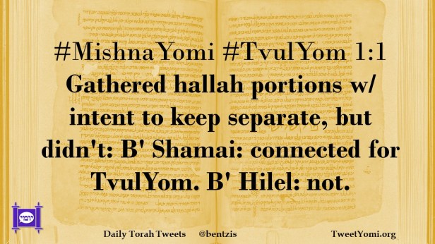 #MishnaYomi #TvulYom 1:1 Gathered hallah portions w/ intent to keep separate, but didn’t: B’ Shamai: connected for TvulYom. B’ Hilel: not.