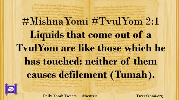 #MishnaYomi #TvulYom 2:1 Liquids that come out of a TvulYom are like those which he has touched: neither of them causes defilement (Tumah).