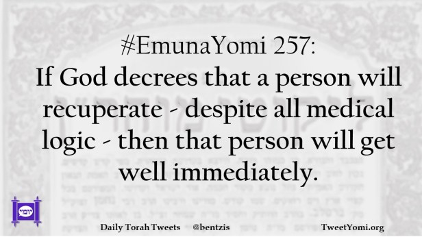 #EmunaYomi 257: If God decrees that a person will recuperate – despite all medical logic – then that person will get well immediately.