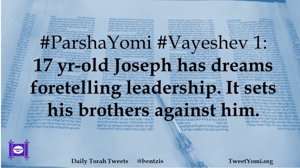 ParshaYomi, Vayeshev #ParshaYomi #Vayeshev 1 Date: November 21, 2021Author: ysspitz #ParshaYomi #Vayeshev 1: 17 yr-old Joseph has dreams foretelling leadership. It sets his brothers against him. Share this: Share on X (Opens in new window) X Share on Facebook (Opens in new window) Facebook Like Loading... Related