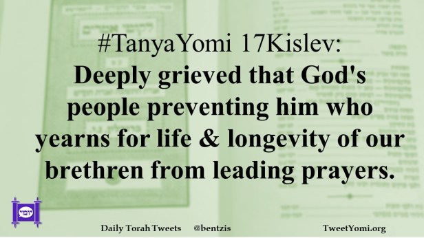 #TanyaYomi 17Kislev: Deeply grieved that God’s people preventing him who yearns for life & longevity of our brethren from leading prayers.