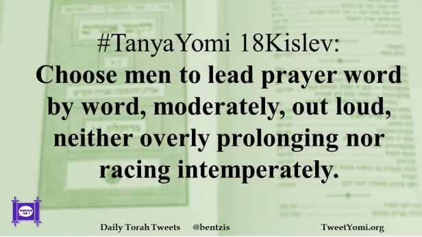 #TanyaYomi 18Kislev: Choose men to lead prayer word by word, moderately, out loud, neither overly prolonging nor racing intemperately.