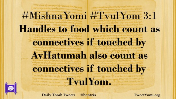 #MishnaYomi #TvulYom 3:1 Handles to food which count as connectives if touched by AvHatumah also count as connectives if touched by TvulYom.