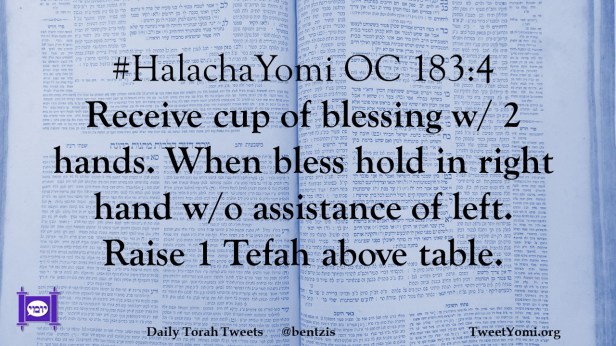 #HalachaYomi OC 183:4 Receive cup of blessing w/ 2 hands. When bless hold in right hand w/o assistance of left. Raise 1 Tefah above table.