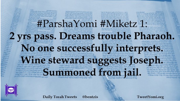 #ParshaYomi #Miketz 1: 2 yrs pass. Dreams trouble Pharaoh. No one successfully interprets. Wine steward suggests Joseph. Summoned from jail.