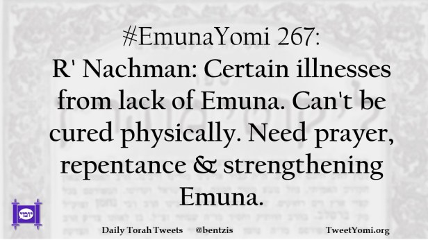 #EmunaYomi 267: R’ Nachman: Certain illnesses from lack of Emuna. Can’t be cured physically. Need prayer, repentance & strengthening Emuna.