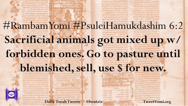 #RambamYomi #PsuleiHamukdashim 6:2 Sacrificial animals got mixed up w/ forbidden ones. Go to pasture until blemished, sell, use $ for new.