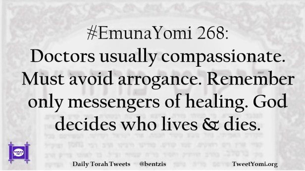 #EmunaYomi 268: Doctors usually compassionate. Must avoid arrogance. Remember only messengers of healing. God decides who lives & dies.