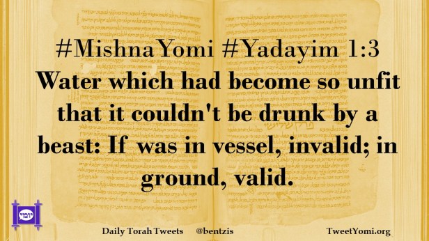 #MishnaYomi #Yadayim 1:3 Water which had become so unfit that it couldn’t be drunk by a beast: If was in vessel, invalid; in ground, valid.