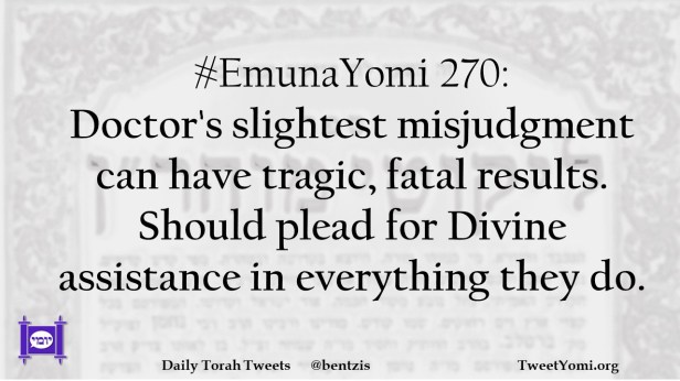 #EmunaYomi 270: Doctor’s slightest misjudgment can have tragic, fatal results. Should plead for Divine assistance in everything they do.