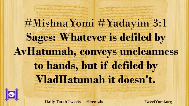#MishnaYomi #Yadayim 3:1 Sages: Whatever is defiled by AvHatumah, conveys uncleanness to hands, but if defiled by VladHatumah it doesn’t.