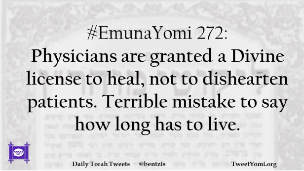 #EmunaYomi 272: Physicians are granted a Divine license to heal, not to dishearten patients. Terrible mistake to say how long has to live.