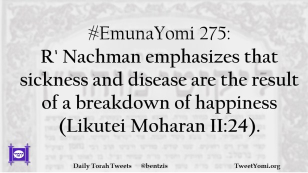 #EmunaYomi 275: R’ Nachman emphasizes that sickness and disease are the result of a breakdown of happiness (Likutei Moharan II:24).