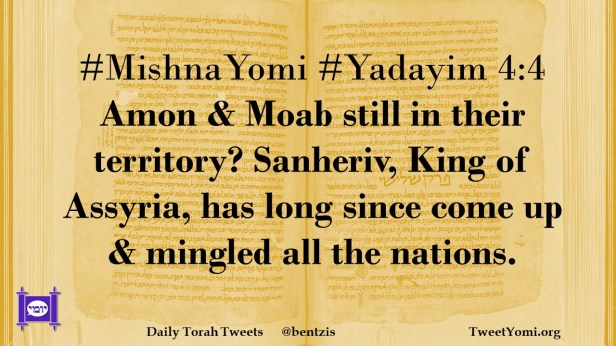 #MishnaYomi #Yadayim 4:4 Amon & Moab still in their territory? Sanheriv, King of Assyria, has long since come up & mingled all the nations.