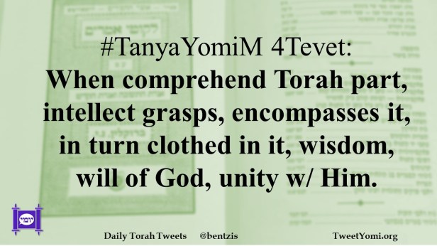 #TanyaYomiM 4Tevet: When comprehend Torah part, intellect grasps, encompasses it, in turn clothed in it, wisdom, will of God, unity w/ Him.