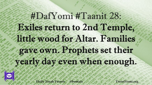 DafYomi, Taanit #DafYomi #Taanit 28 Date: December 10, 2021Author: ysspitz #DafYomi #Taanit 28: Exiles return to 2nd Temple, little wood for Altar. Families gave own. Prophets set their yearly day even when enough. Share this: Share on X (Opens in new window) X Share on Facebook (Opens in new window) Facebook Like Loading... Related